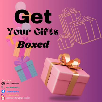 Hand-made mini, medium and large food and gift boxes for immediate pickups at mini-marts and supermarkets for packaging gifts of all kinds e.g throw pillows, jewelries, wears, teddies, e.t.c
